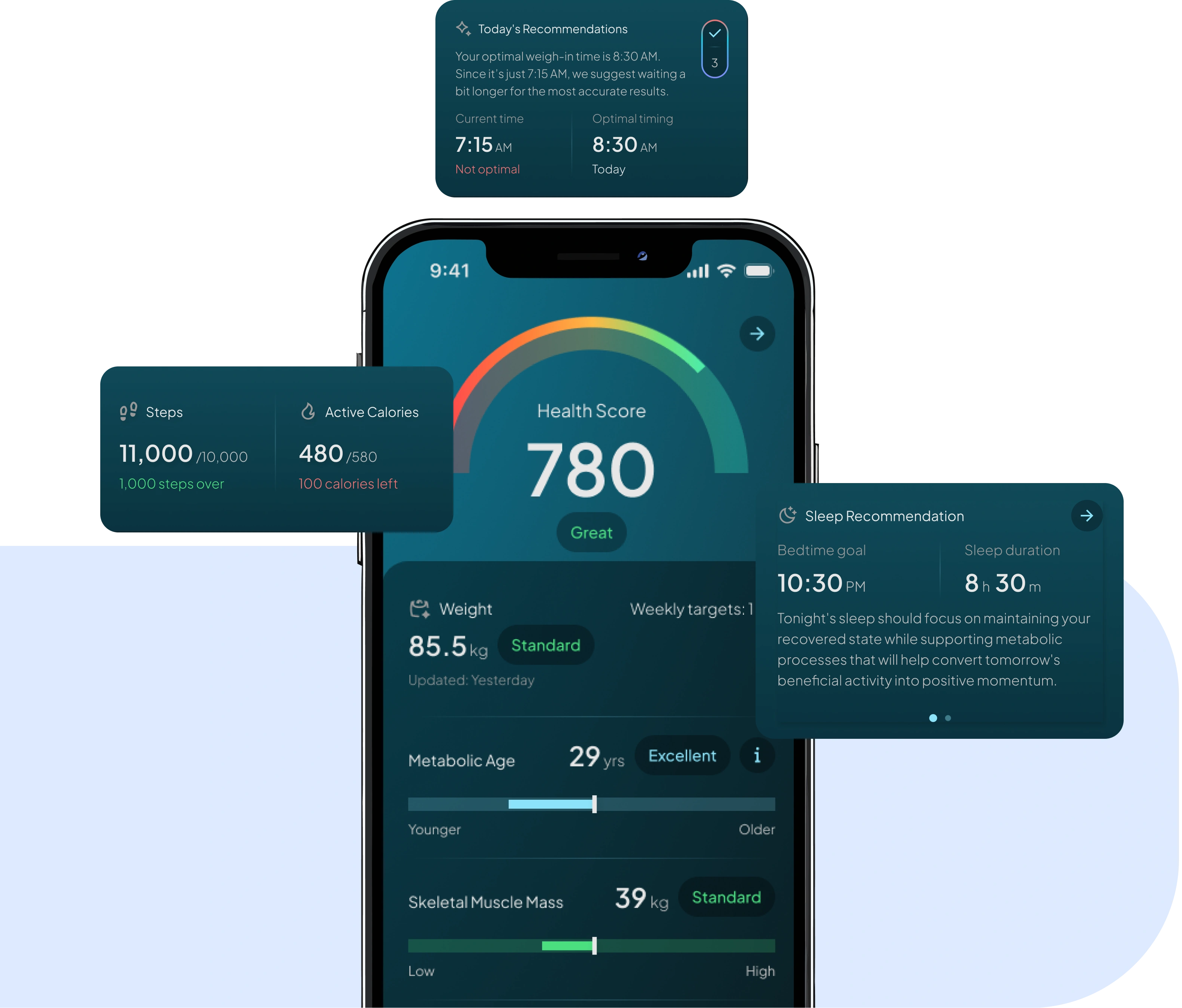 Connect all your health devices and bring your data together in one place. With seamless syncing between your wearables, smart scales, and health apps, the Hume app turns scattered numbers into clear, real-time insights. The more you connect, the more accurate and personalized your guidance becomes—helping you understand your body better and make smarter choices every day.