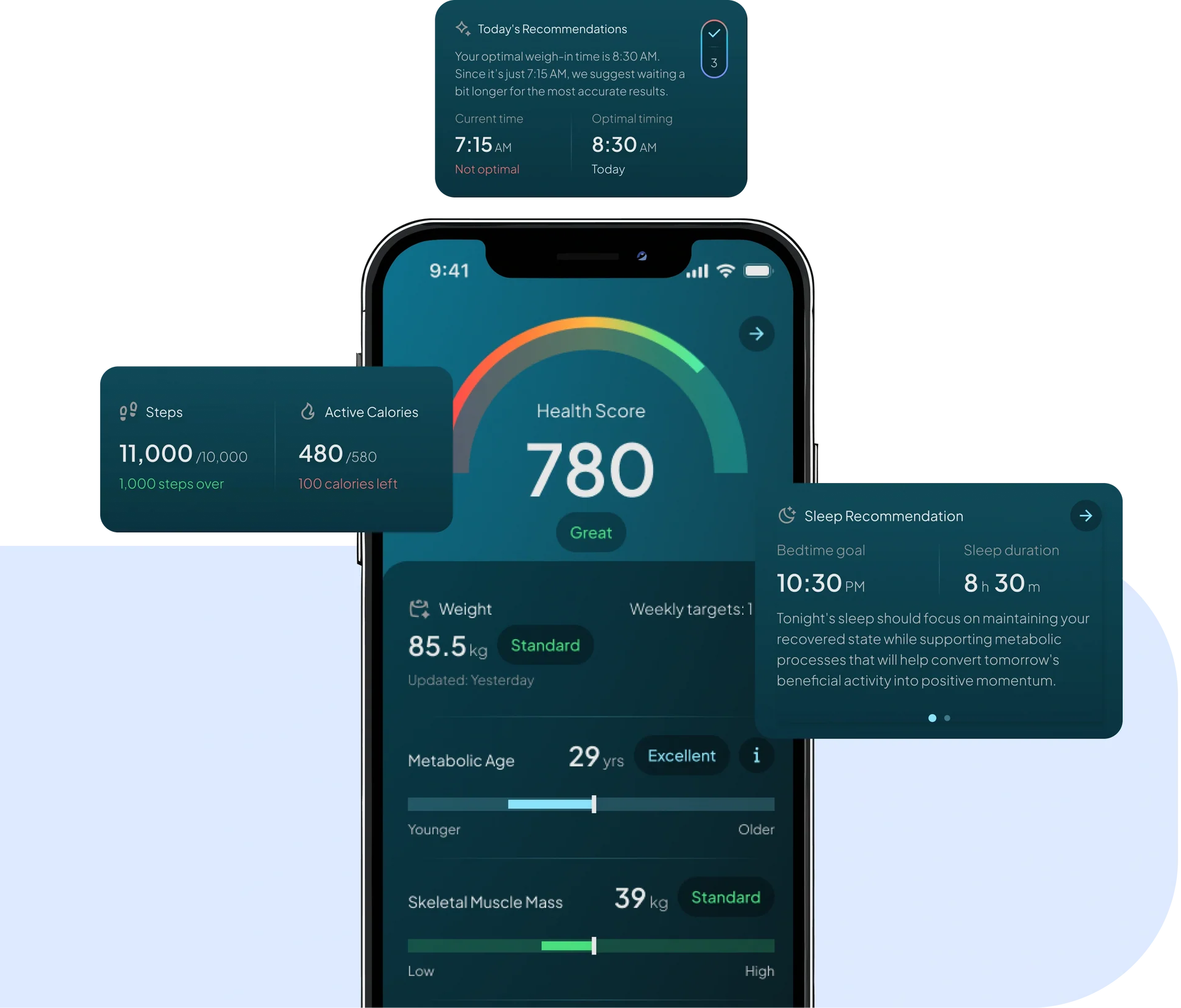 It’s time to get actively involved in improving your health. Pinpoint areas for improvement, adjust your efforts and increase your score overtime. The more data you track, the more accurate your score will become—and the more benefits you’ll s