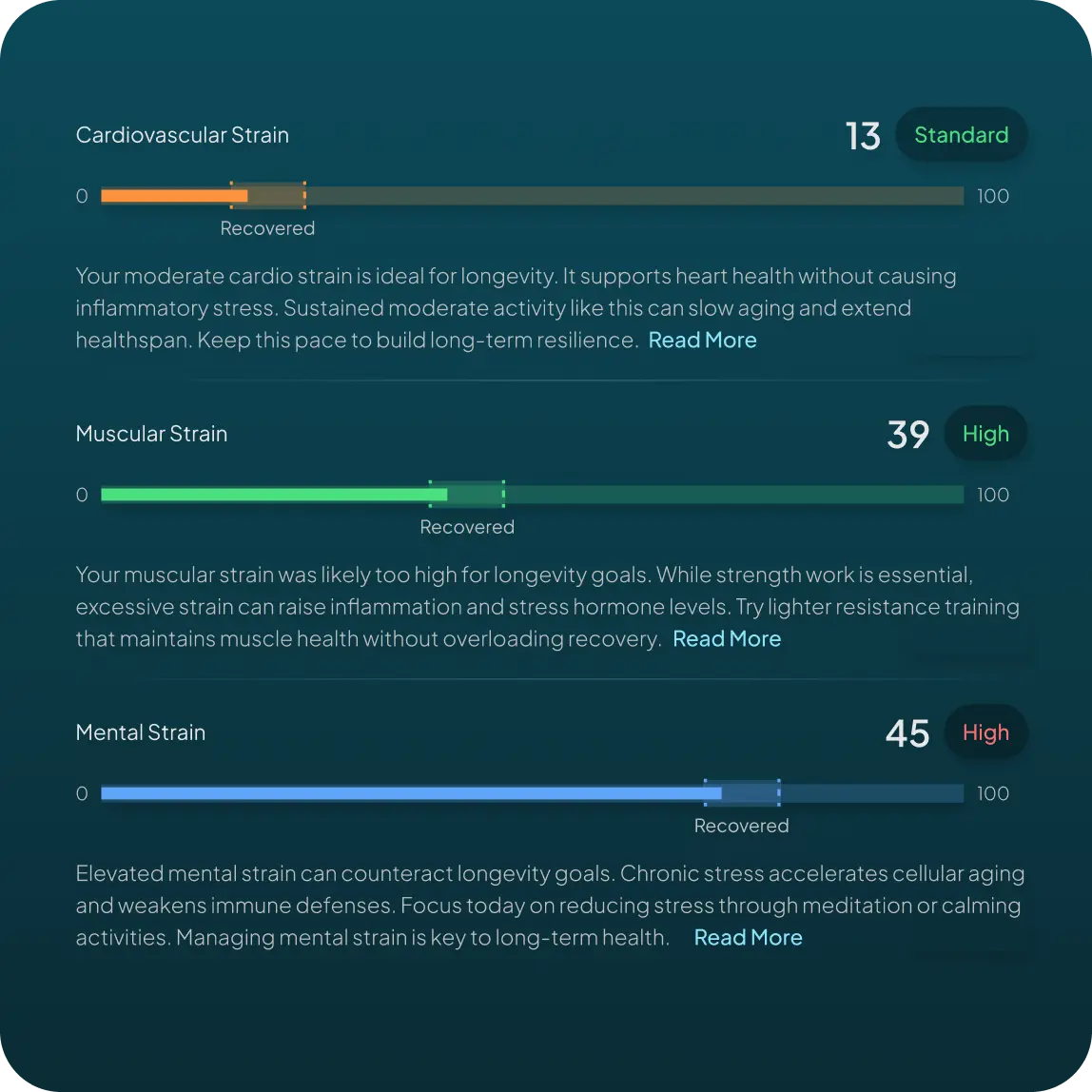 Track and get guidance on how to better maintain endurance, faster recovery, and greater resilience with age—like sharpening a sword that lasts longer, not dulling with time.