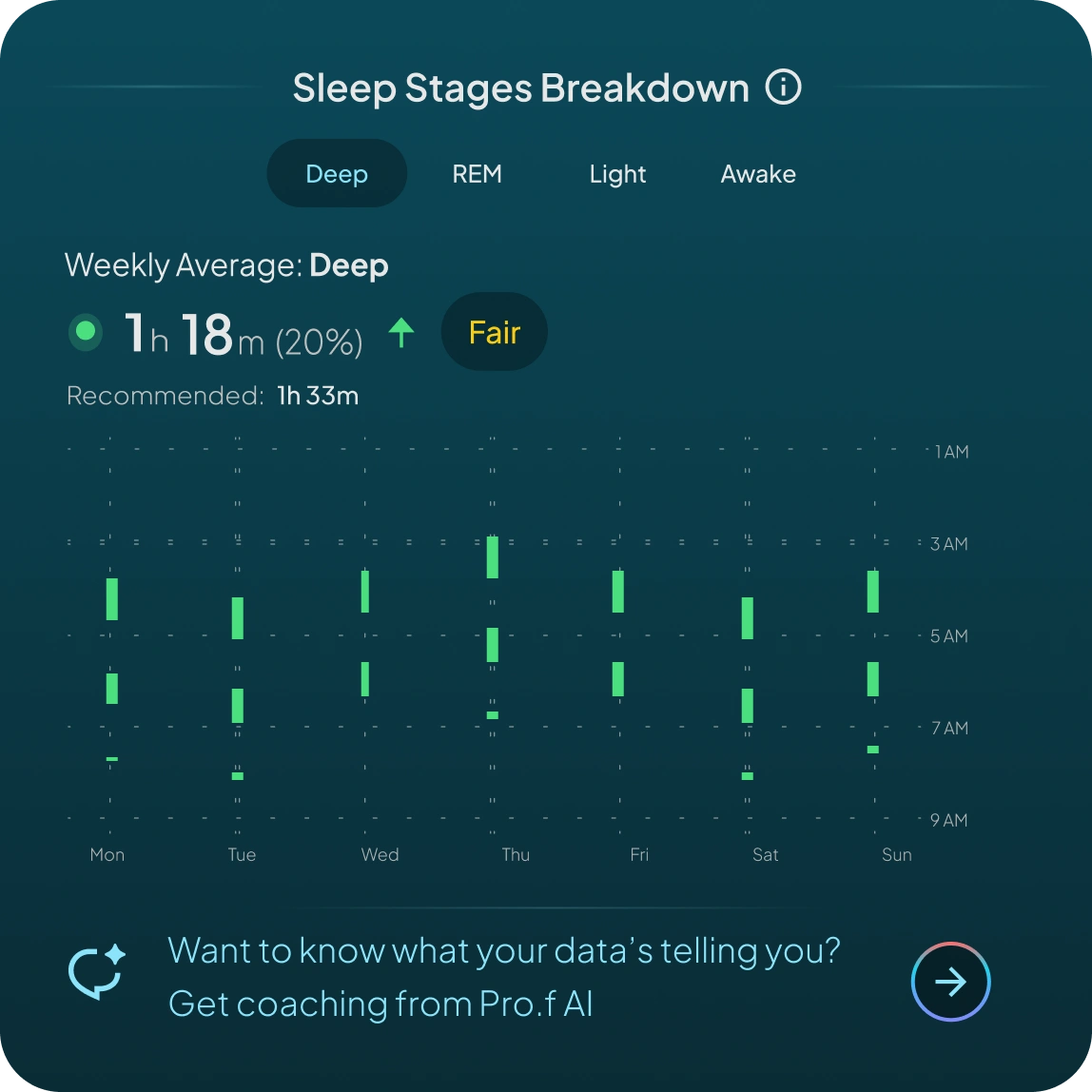 - Sleep stages (light, deep, REM, awake)
