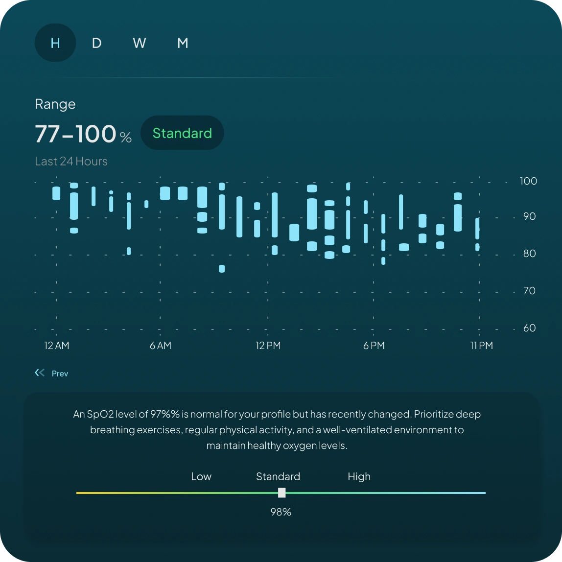 - Blood oxygen levels (SpO2)