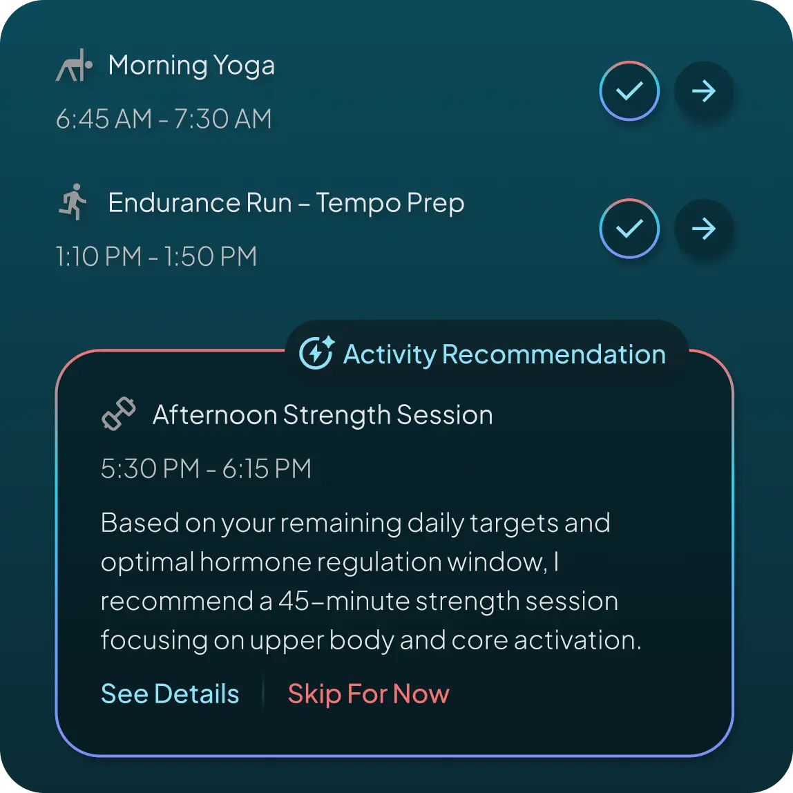 No more guessing. Get daily and weekly personalized insights, backed by cutting-edge science, to optimize your health, slow aging, and extend your lifespan.