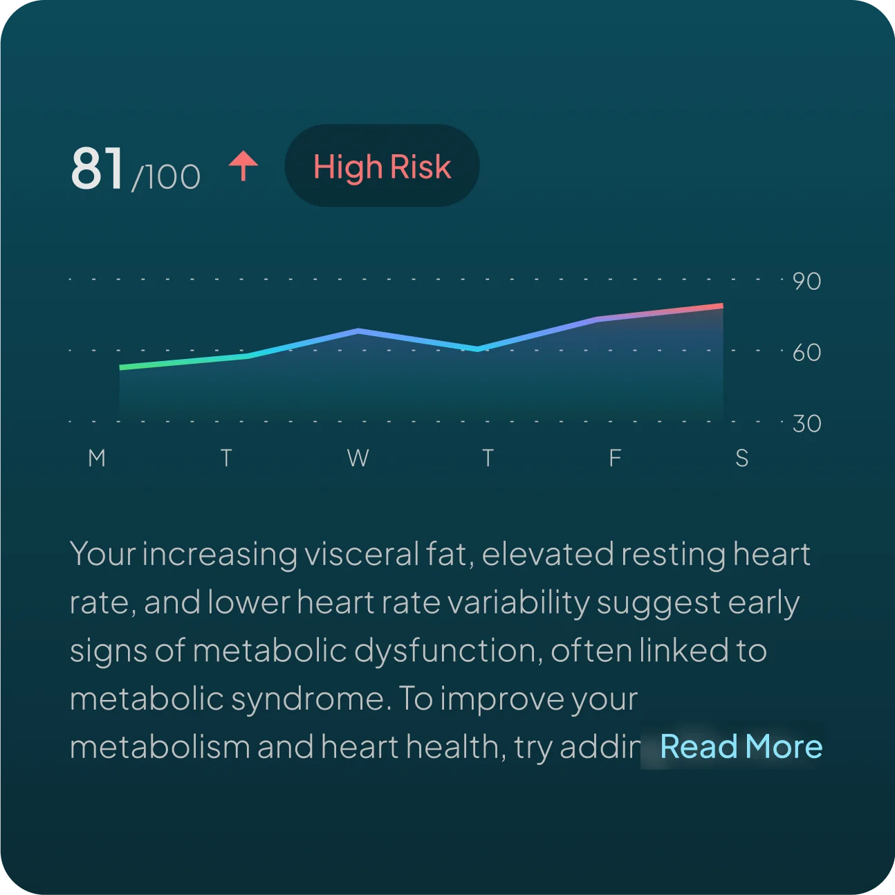 We constantly scan your biometrics to detect early signs of stress, immune decline, inflammation, and recovery delays—so you can act before illness takes hold.