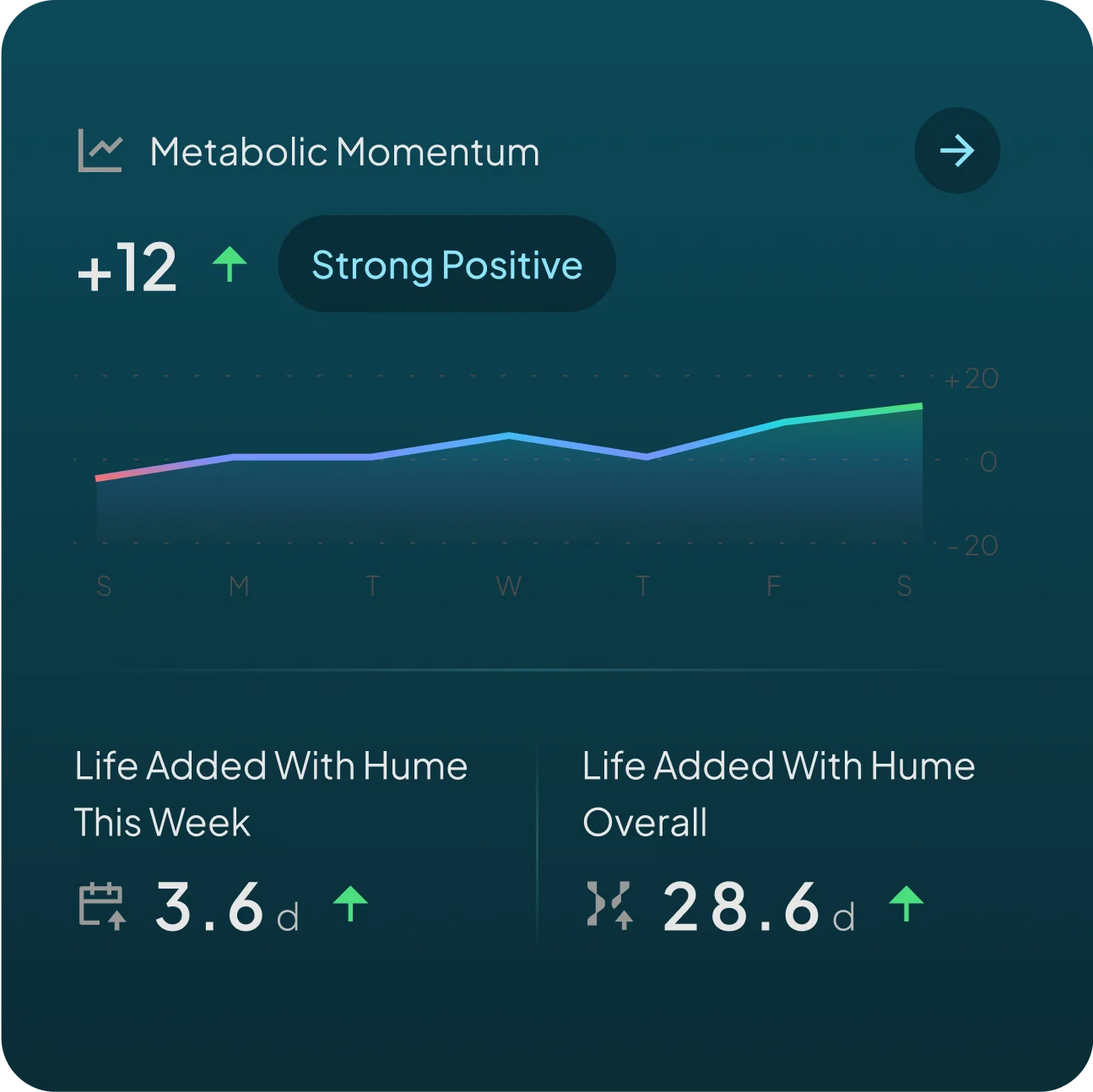 Get real-time insights into whether your daily choices are slowing aging or speeding it up. Metabolic Momentum shows you exactly where you're headed—so you can take control, adjust fast, and build a longer, stronger life.
