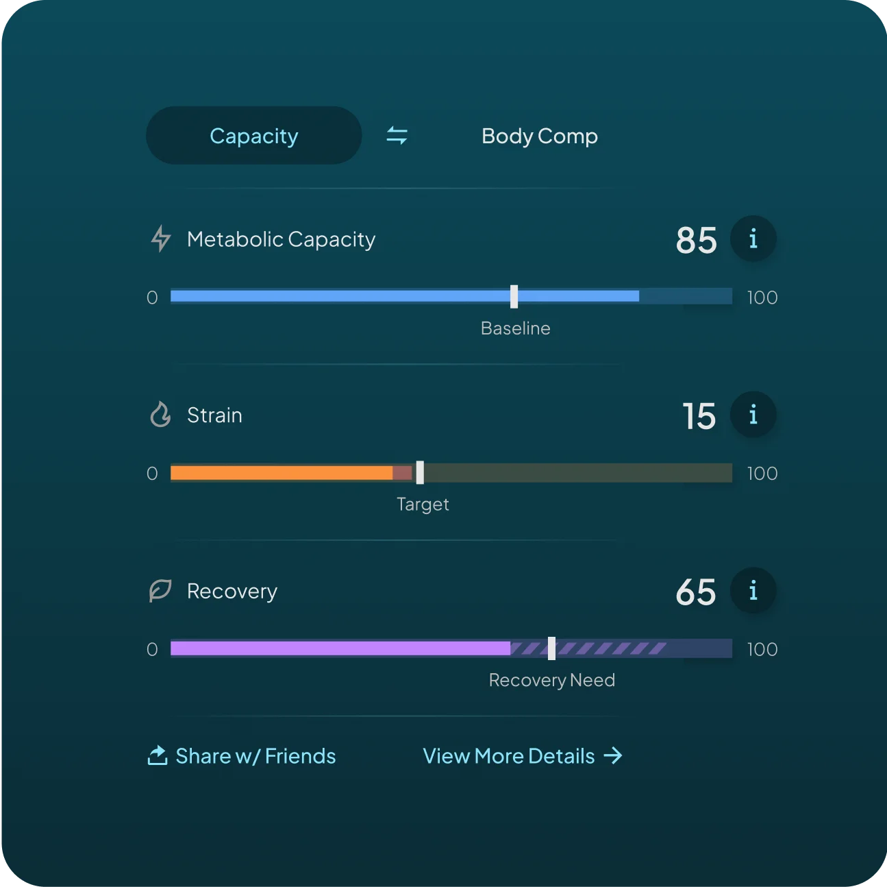 Measure your Metabolic Capacity—a key indicator of how efficiently your body performs and recovers. The higher it is, the better your endurance, the faster your recovery, and the stronger your resilience as you age.