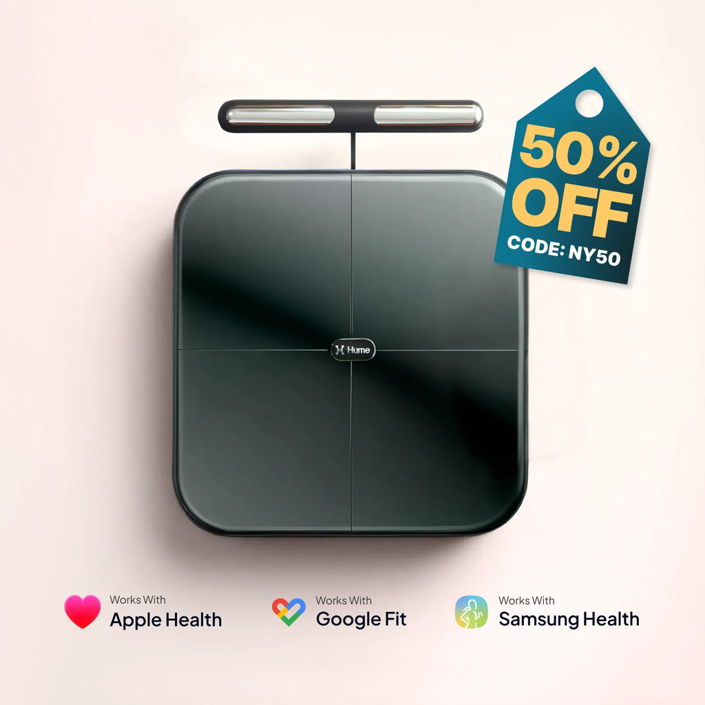 Our Hume Pod delivers full-body insights, measuring muscle mass, body fat, and water composition with superior accuracy. Unlike standard smart scales that only measure half the body and uses estimations, the Hume Pod provides reliable data that empowers you to track your progress and achieve your fitness goals with confidence.
