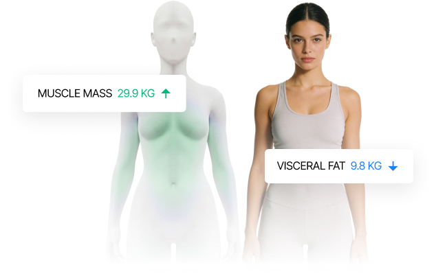 The Hume Pod scans your entire body in 60 seconds, measuring muscle mass, body fat, visceral fat, bone density and 40+ health metrics with 98% DEXA-like accuracy.