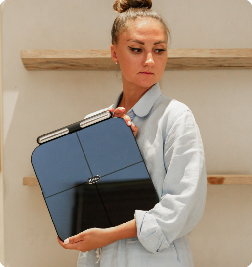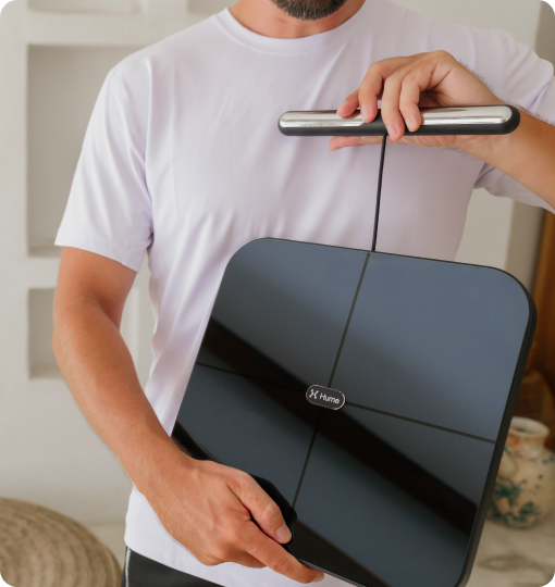 Remain in place, upright on the scale holding both handles steady, until the Hume Health app signals that your weigh-in is complete.Checklist: