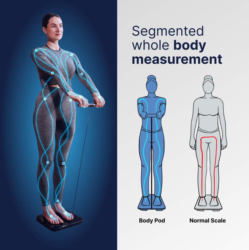 The Body Pod uses advanced multifrequency bioelectrical impedance analysis (BIA) technology for ultra-precise assessments of each body part. Visualize fat and muscle mass like never before! This cutting-edge tech is perfect for anyone aiming to enhance their physical performance with a targeted approach.