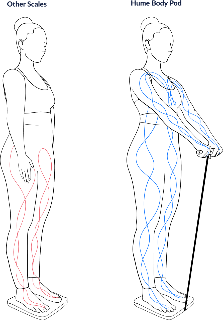 Remain in place, upright on the scale holding both handles steady, until the Hume Health app signals that your weigh-in is complete.Checklist: